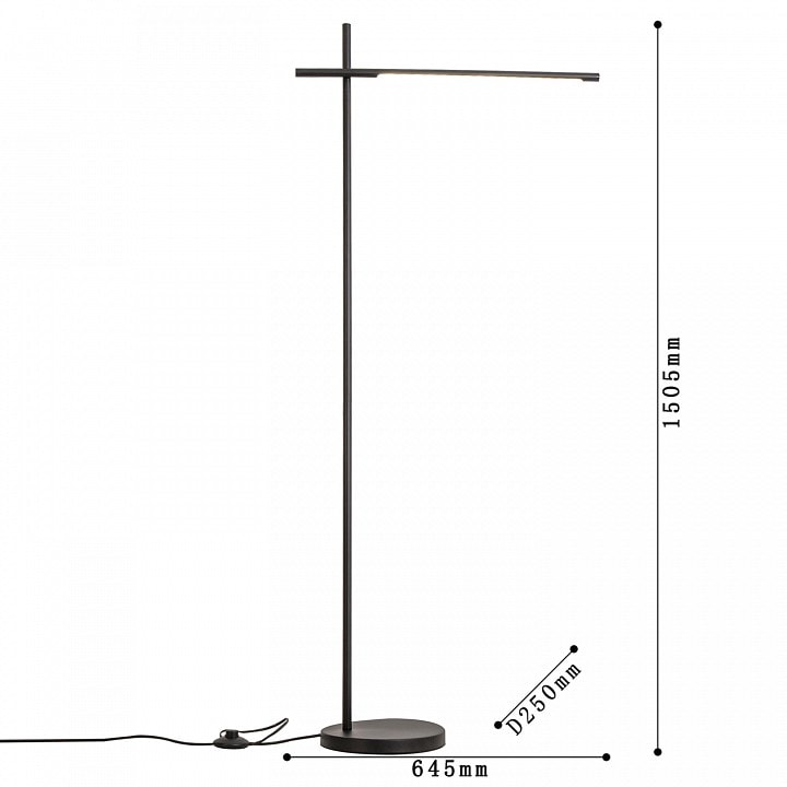 С высотой 1505 мм и глубиной 645 мм, торшер легко впишется в любое пространство, обеспечивая при этом достаточное освещение для площади до 7.5 м². Он оснащен одним светодиодным плафоном, который обеспечивает максимальную мощность в 15 Вт, что позволяет создать уютную атмосферу в вашем доме.