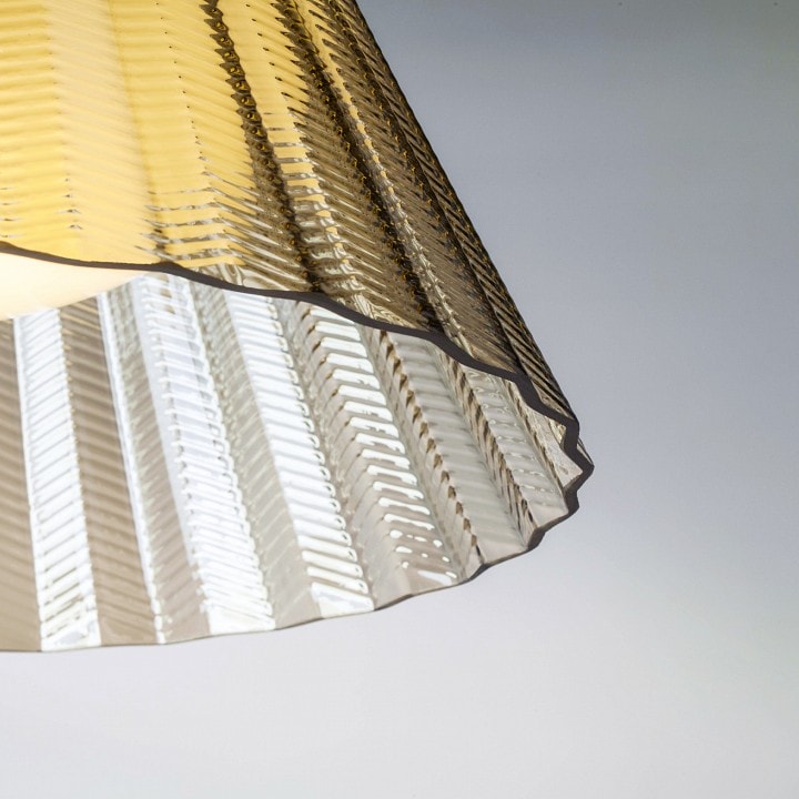 Торшер выполнен в модерн стиле, что позволяет ему легко вписаться в различные интерьеры. Его конусообразный плафон с усеченной верхней частью добавляет изысканности и современности. Кроме того, торшер оснащен ножным выключателем, что делает его использование еще более удобным.