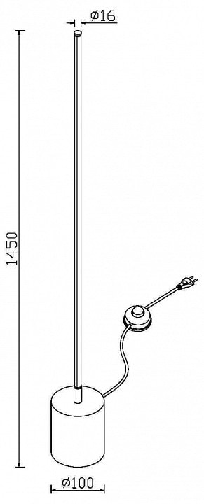 С высотой 1450 мм и диаметром 100 мм, торшер легко впишется в любое пространство, обеспечивая при этом достаточное освещение. Он оснащен одним светодиодным плафоном, который направлен вверх, создавая мягкий и равномерный свет, способный осветить площадь до 12.5 м². Максимальная мощность лампы составляет 25 Вт, что делает его энергоэффективным решением для вашего интерьера.