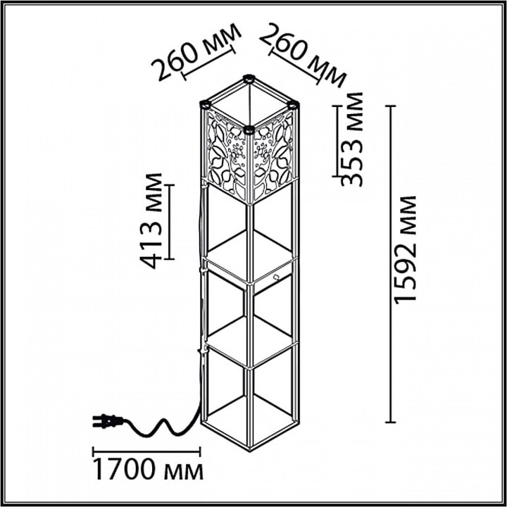 Одной из ключевых особенностей этого торшера является наличие полки, которая предоставляет дополнительное пространство для размещения книг, декоративных элементов или других мелочей. Выключатель шнурового типа обеспечивает удобное управление освещением, а направленные плафоны, которые можно настроить в стороны и вверх, позволят создать нужное освещение в зависимости от ваших предпочтений.