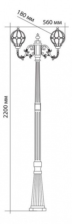 Фонарный столб выполнен в элегантном флористическом стиле, что делает его подходящим для различных ландшафтных решений. С глубиной и выступом в 560 мм, он гармонично впишется в любой ландшафт. Степень пылевлагозащиты IP44 гарантирует долговечность и надежность в любых погодных условиях, что делает его идеальным для уличного использования.