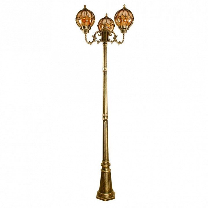 Фонарный столб оснащен тремя плафонами, которые направлены вверх, создавая мягкое и равномерное освещение. Максимальная мощность лампы составляет 60 Вт, а общее количество ламп - 3, что позволяет достичь общей мощности в 180 Вт. Обратите внимание, что лампы в комплекте отсутствуют, поэтому вы можете выбрать подходящие лампы с цоколем E27 по вашему вкусу.