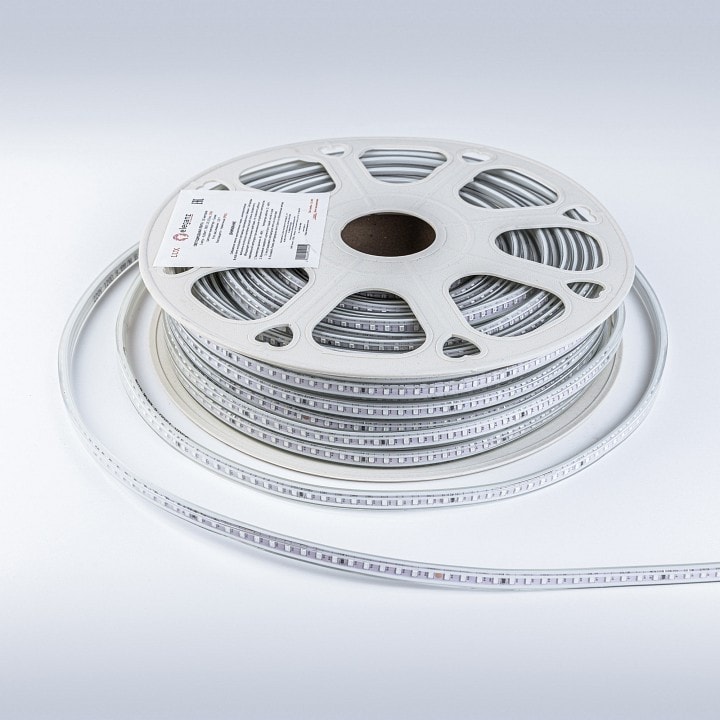 Светодиоды работают при напряжении 220 В и общей мощности 480 Вт, что делает их подходящими для длительного использования. Благодаря степени пылевлагозащиты IP-65, лента устойчива к воздействию внешней среды, что гарантирует её долговечность и надежность в любых погодных условиях.