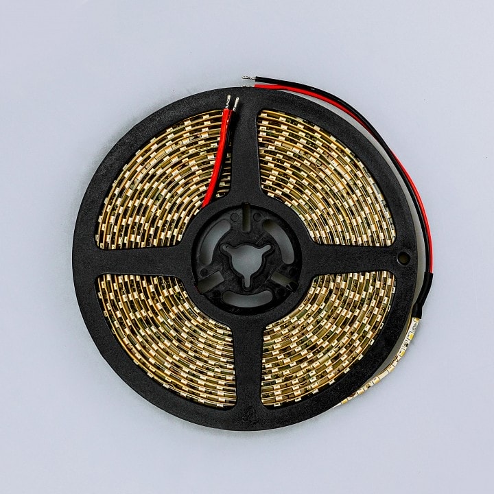 Лента оснащена 600 светодиодами, что обеспечивает мощность в 48 Вт и яркость, способную осветить даже самые темные уголки. Работает на напряжении 12 В, что делает её безопасной и удобной в использовании. Для подключения потребуется блок питания 12 В, который легко найти в нашем интернет-магазине.