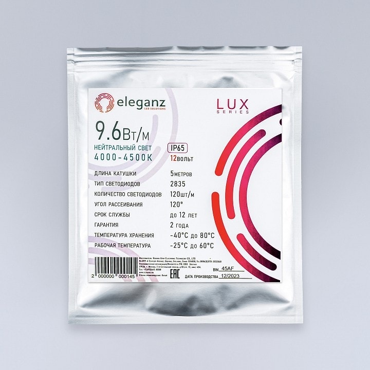 Выбирая светодиодную ленту Eleganz LUX EL-LS65-96N, вы получаете не только стильное освещение, но и долговечное решение для вашего пространства. Заказывайте прямо сейчас и преобразите своё окружение с помощью качественного освещения!