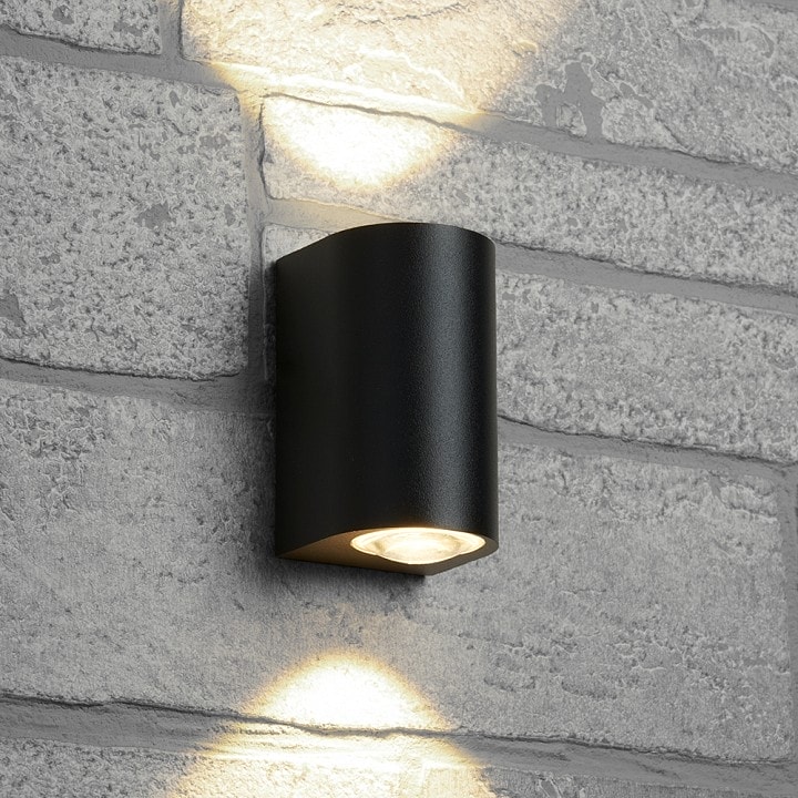 Светильник выполнен в техно-стиле и имеет компактные размеры: глубина составляет всего 55 мм, высота — 100 мм, что позволяет легко интегрировать его в различные пространства. Благодаря одному плафону, направленному вверх и вниз, вы сможете создать уютную атмосферу, освещая площадь до 1 м².